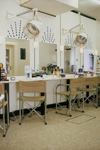 Adhesive tape placed above hairdresser’s mirrors to make the customers feel like princesses.